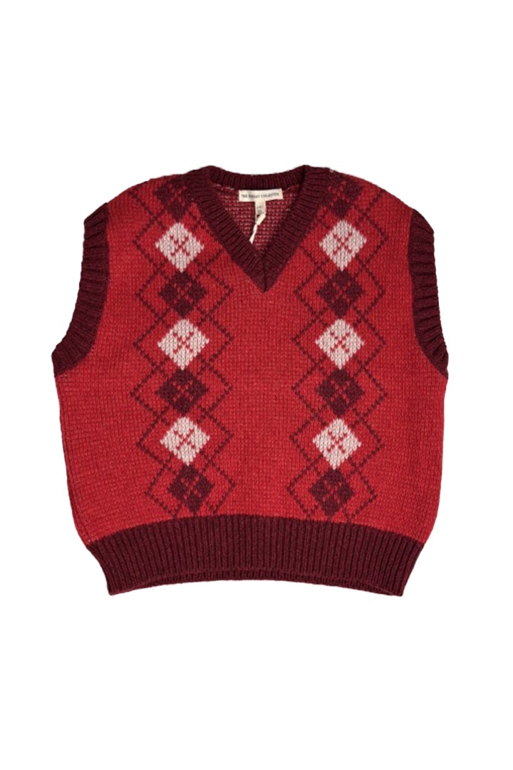 The Sunday Collective / Wool Yearbook Vest In Argyle / F25K7212-RD / Argyle