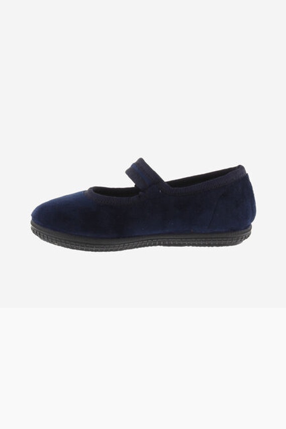 Made in velvet, with a rectangular buckle fastening and comfy 100% natural rubber sole.