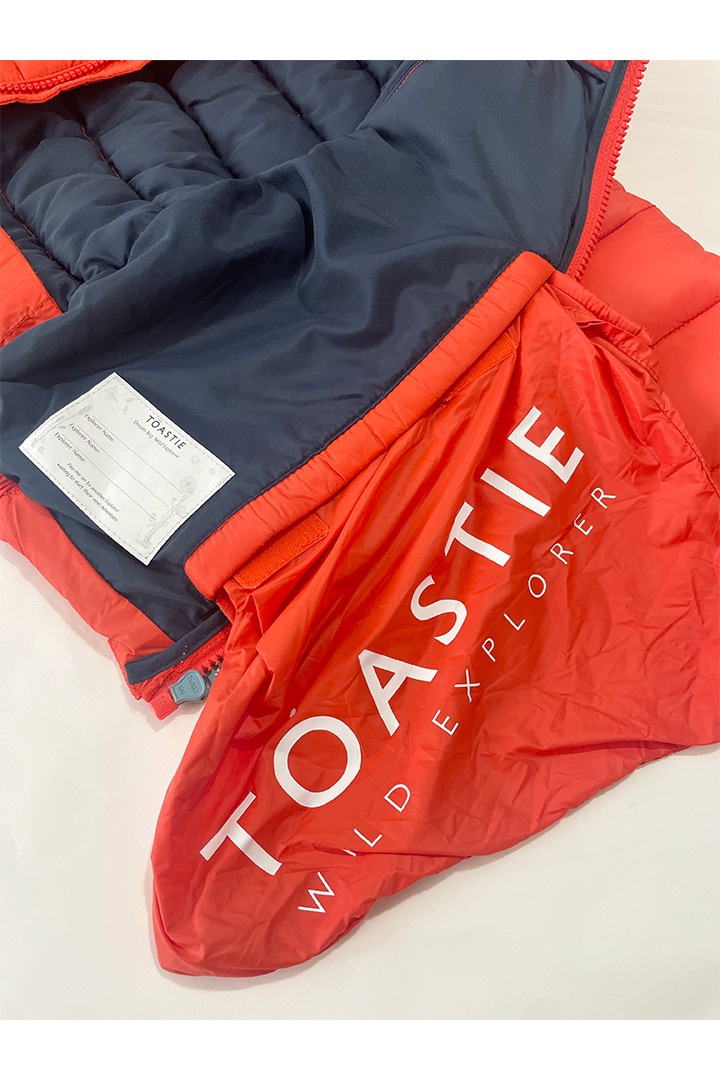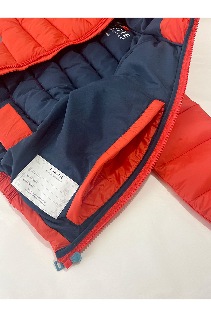 Toastie's sustainably made pack-a-way puffer jackets fuse fashion with performance for ultimate comfort, warmth and durability. Designed to pack down into their own pocket for ease and space saving when travelling or out on adventures. Doubles as travel pillow when packed down. Designed in a range of bright colours to ensure your Tiny Explorer stands out in the playground