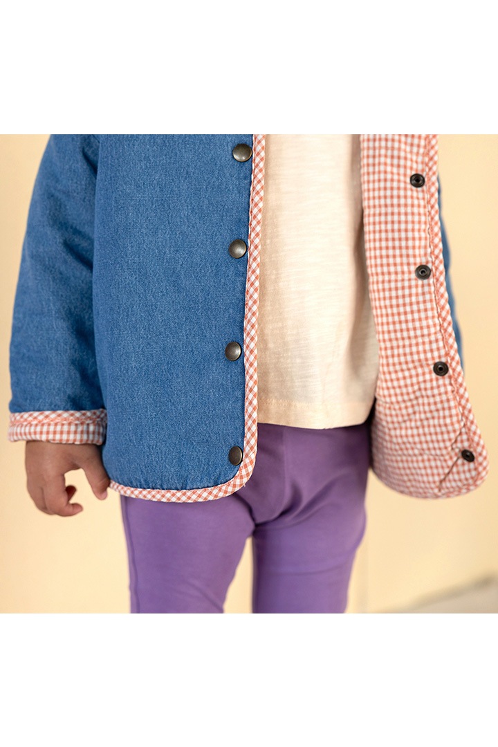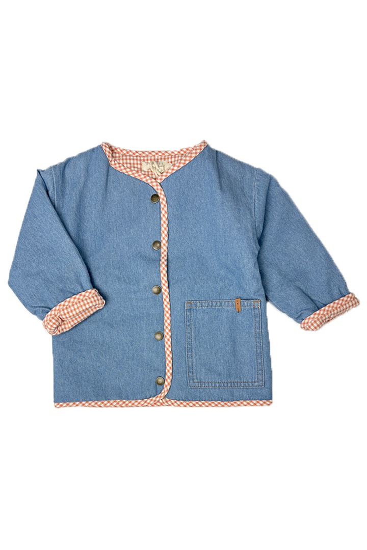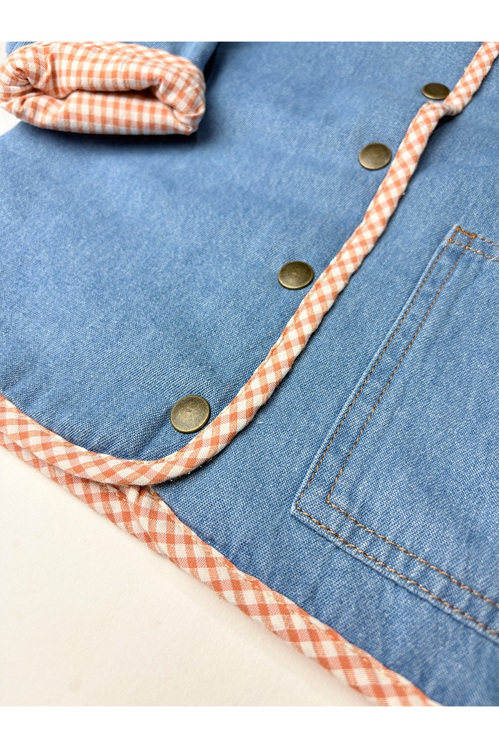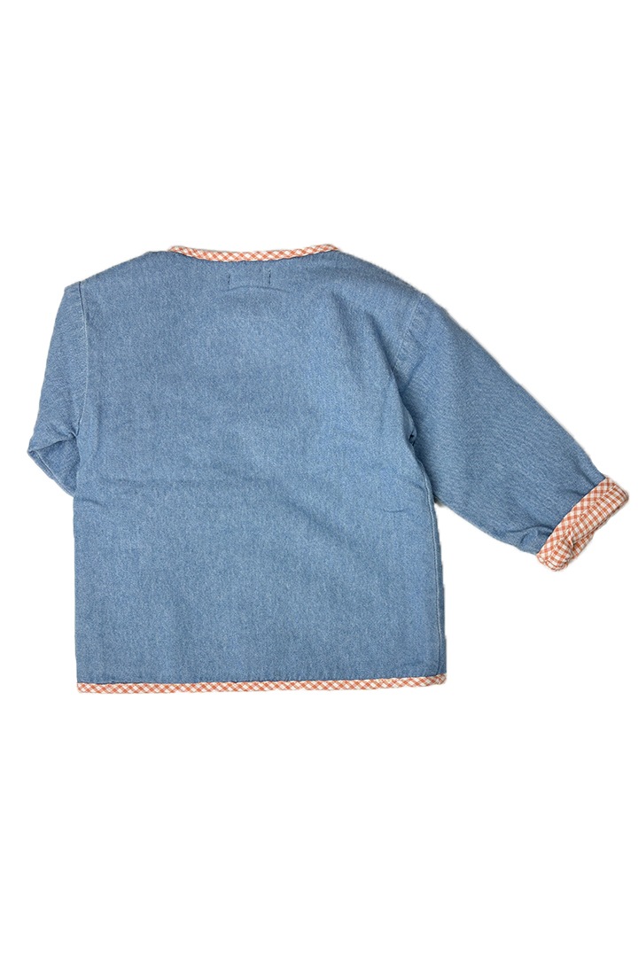 裏地はオレンジチェックのシャツ生地。