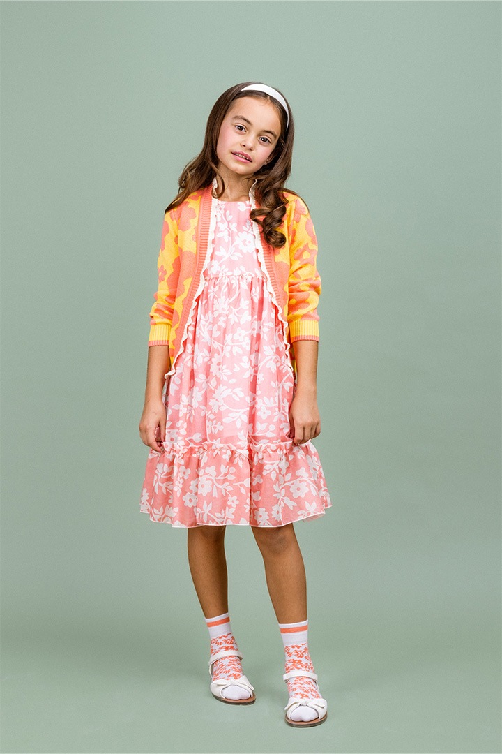 黄色のベースに、全体にピンクのデイジー柄が、