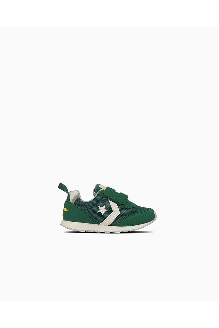 ワンベルトタイプでベルト先にはタブ、踵にはループが付属するため履かせやすく、履きやすいデザイン。
