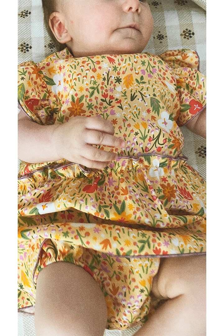 body dress with flower print, yellow flowers