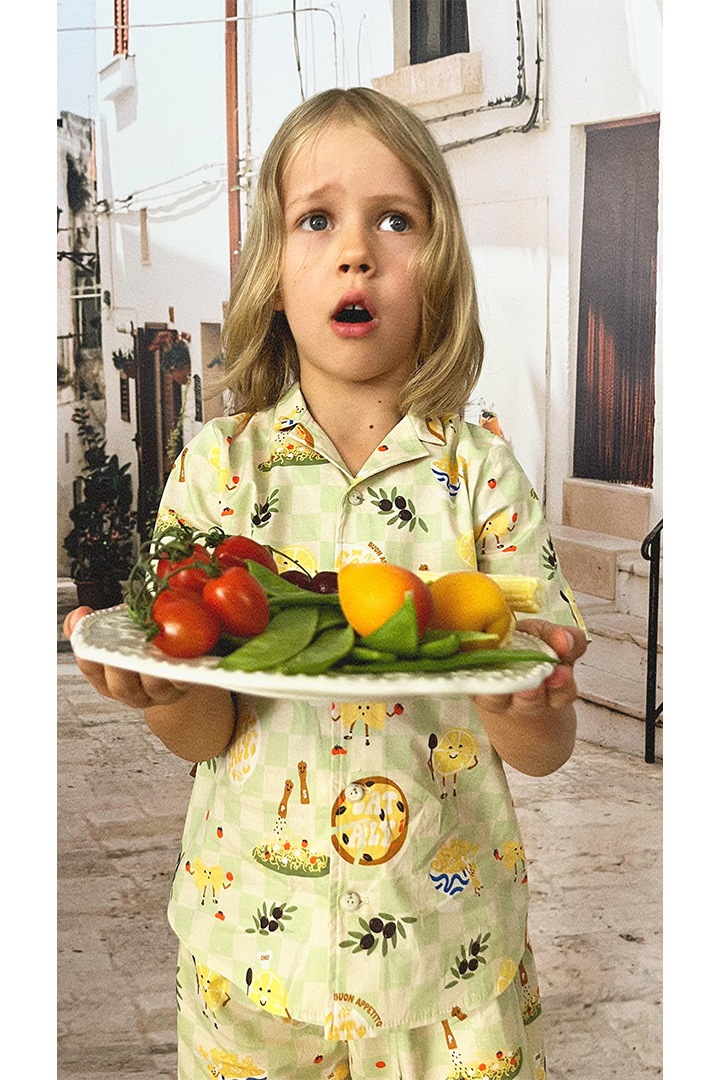 いろいろな食べ物が並んだユニークなデザイン。