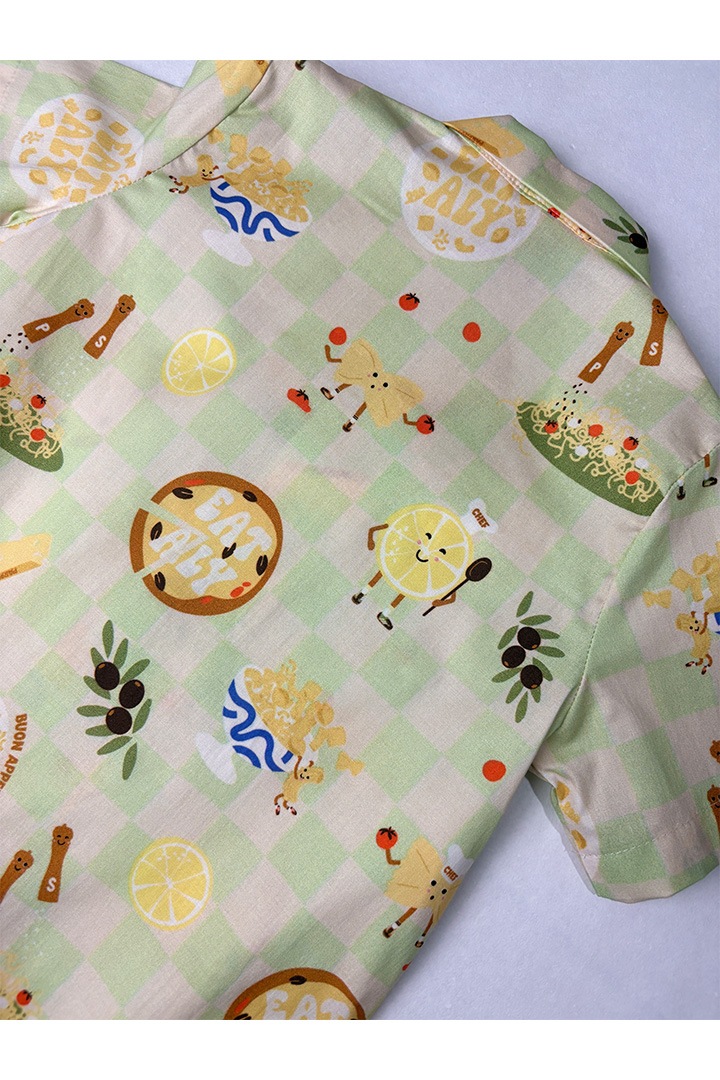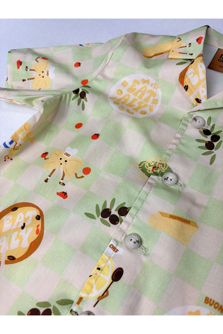 shirt with short sleeves with light green checker print