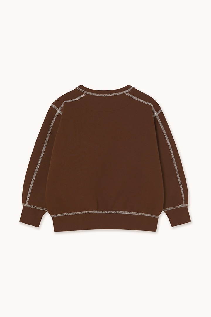 ブラウンの生地にホワイトのアウトステッチのデザイン。
