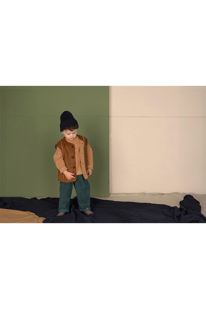 深いブラウンの大きめなボタンが可愛らしいアウターです。