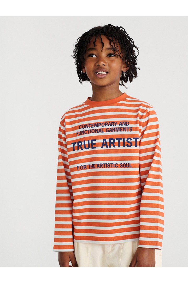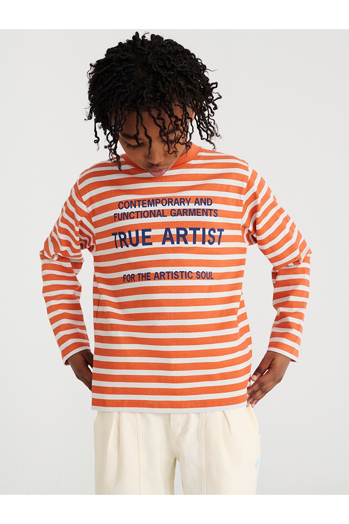 落ち着いたオレンジと淡いブルーのボーダー柄が大人っぽく、