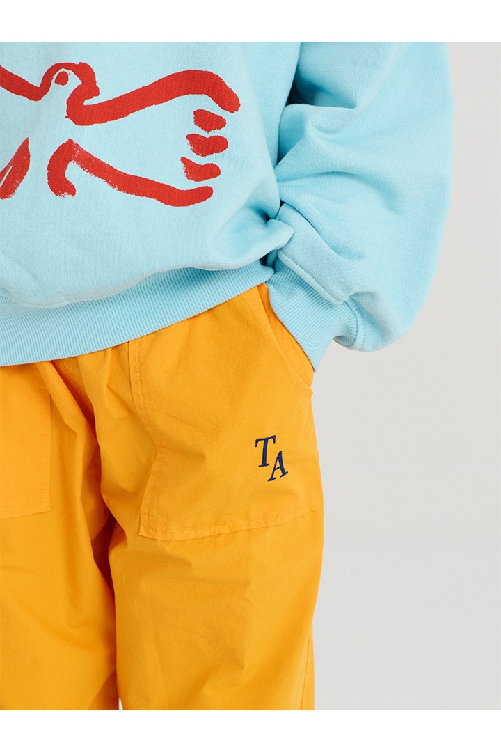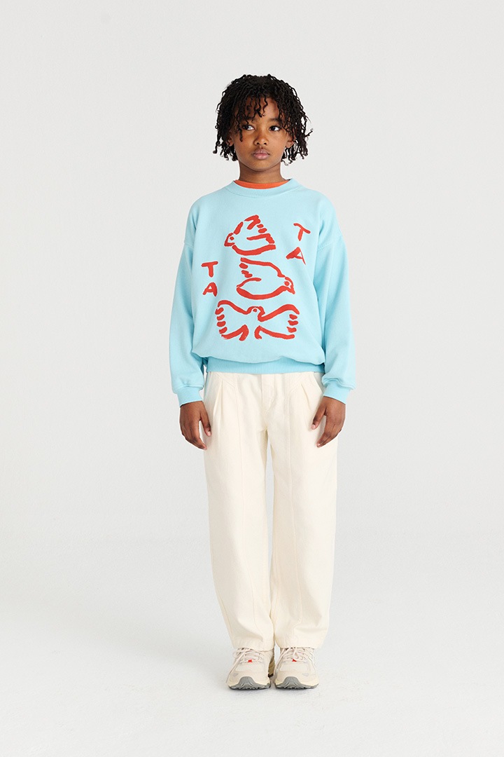 アートな鳥のプリントとブランドロゴ。