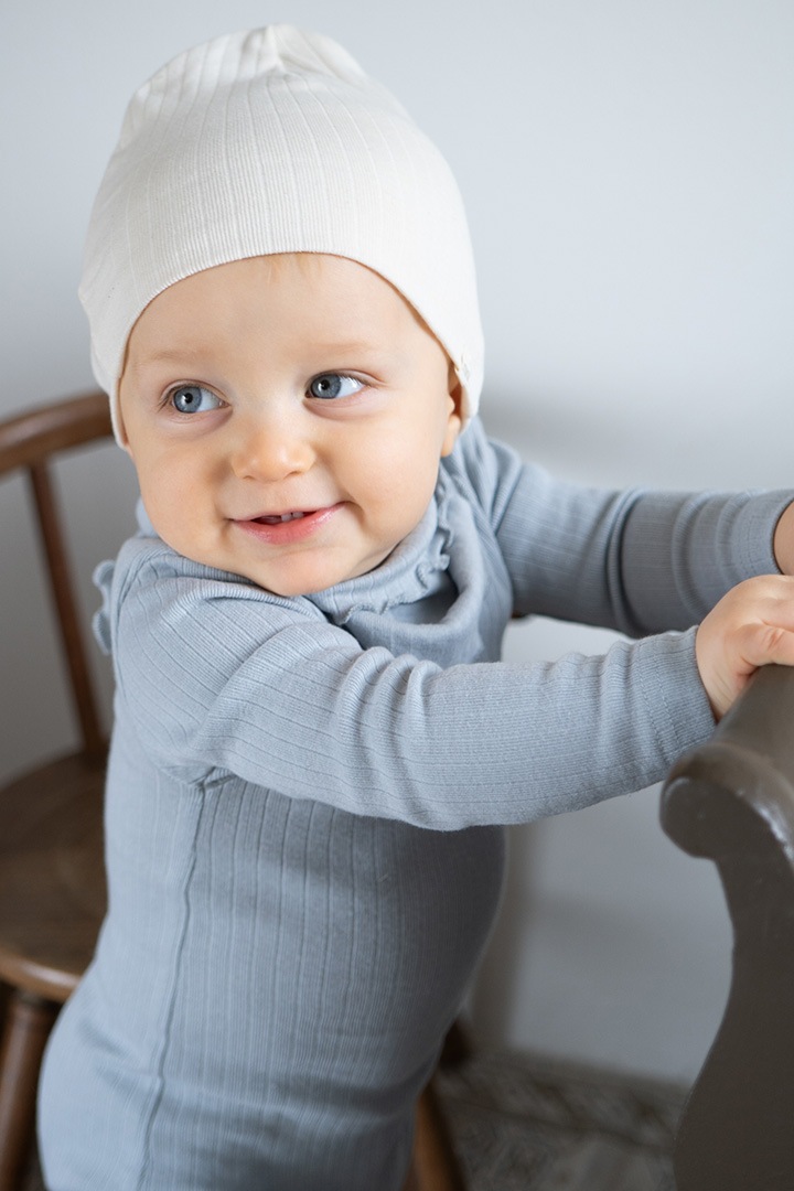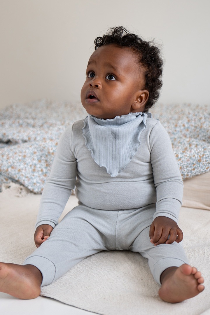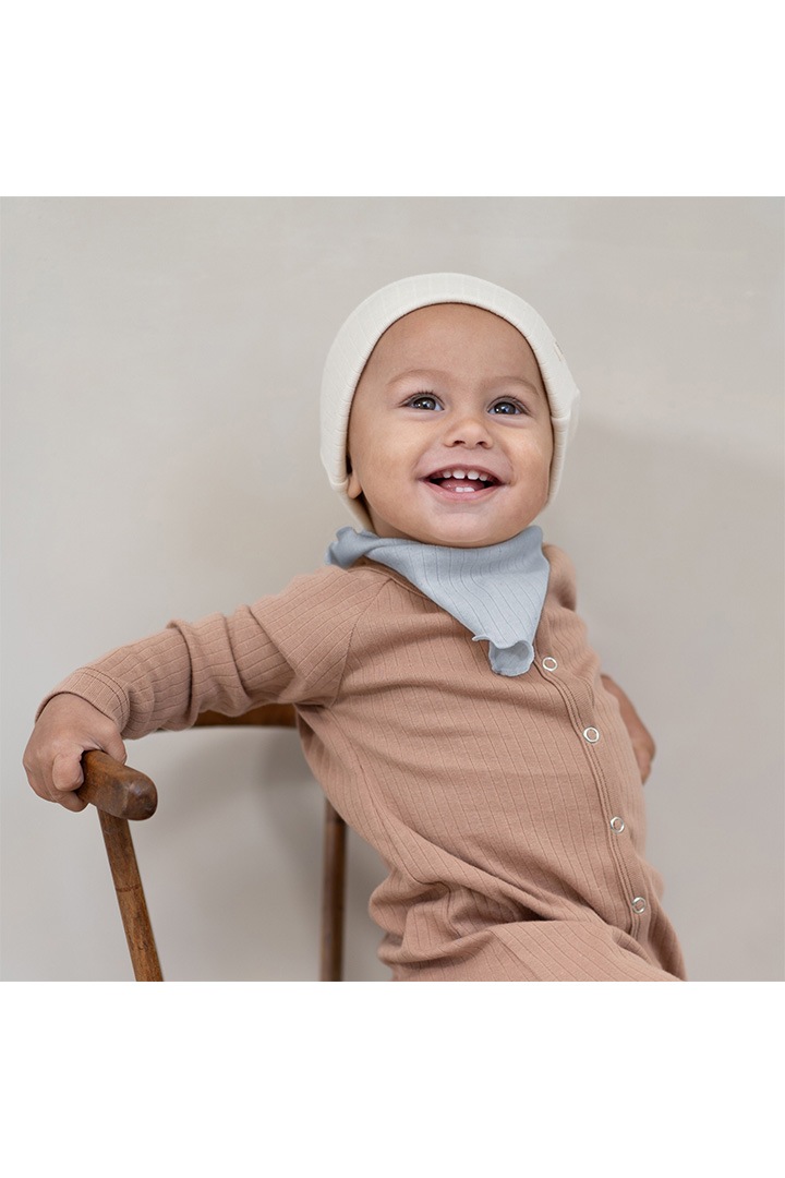 The soft frill scarf Nuria is made of 100% GOTS certified organic cotton and can be worn as a bib, scarf or headband. The rib jersey is very soft and stretchable which provides an all day comfort.