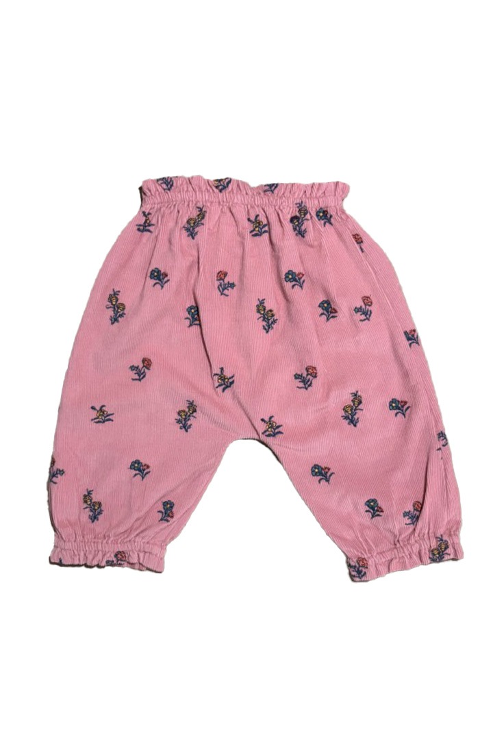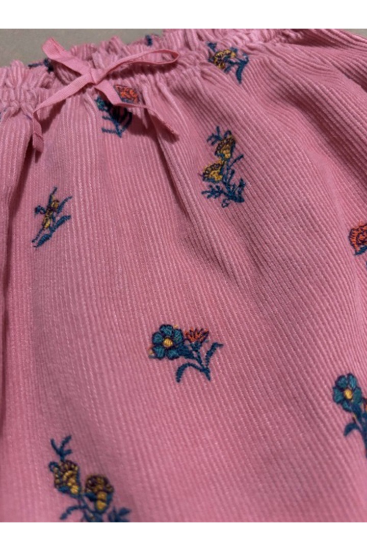ブルーやピンク、黄色のお花が全体に刺繍されています。