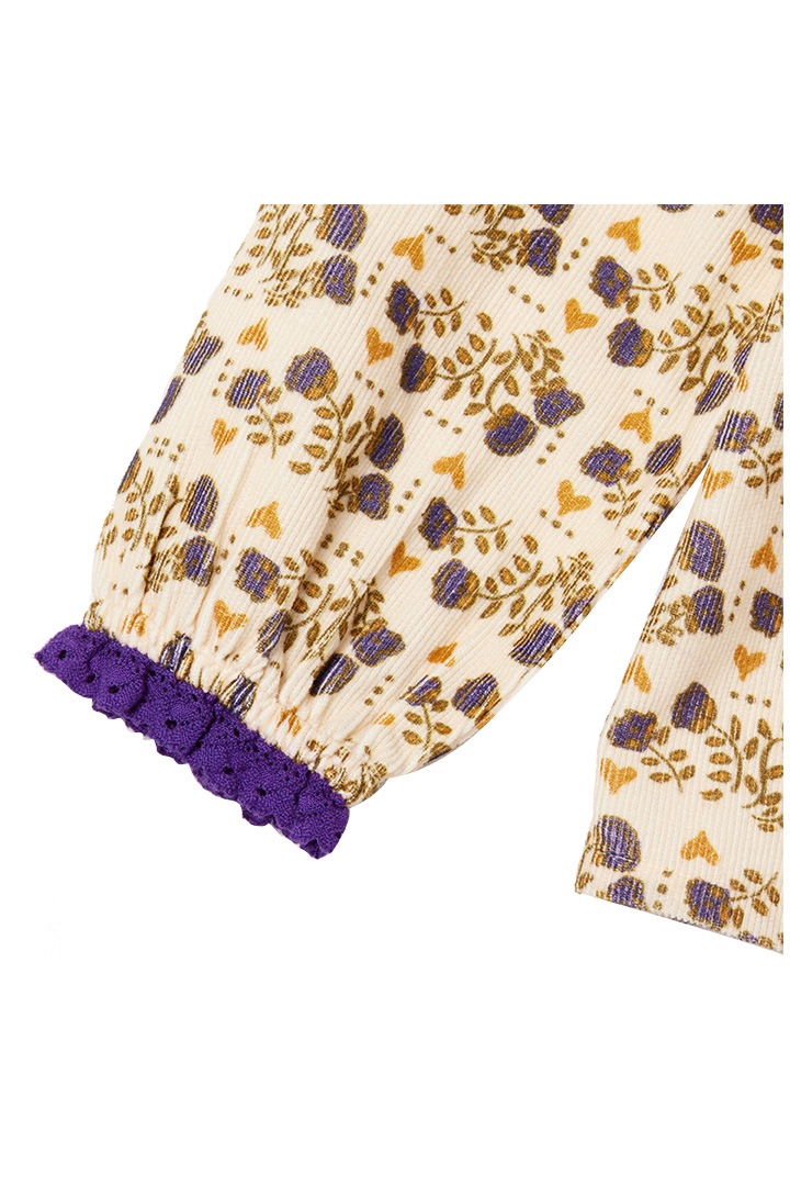 袖口、ウエスト部分のパープルのレースがアクセントになっています。