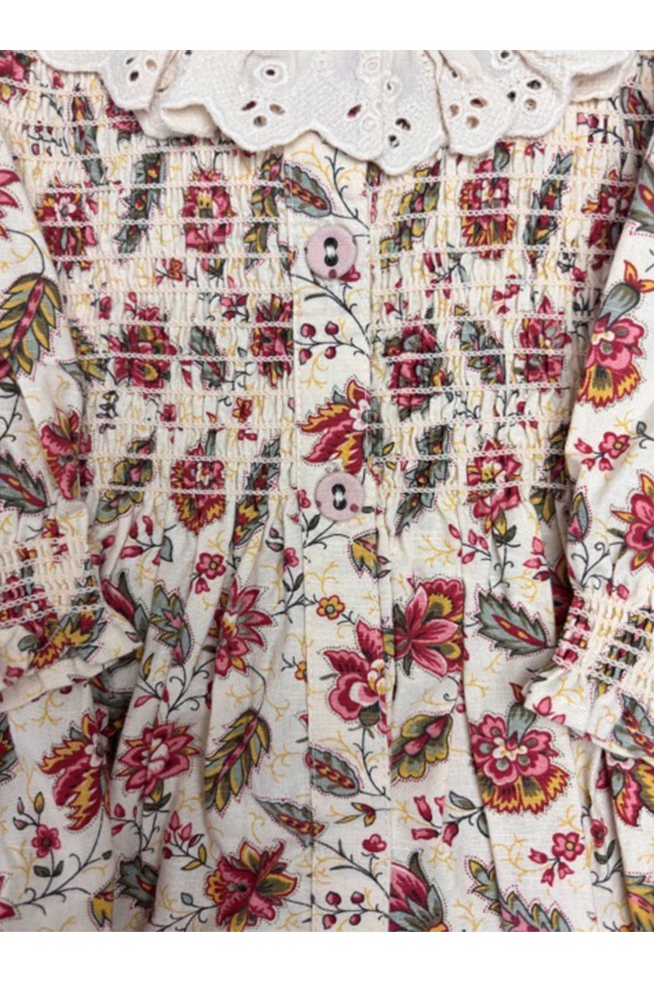 ドット柄と花柄のリバーシブルですが、花柄面にはブランドタグと、洗濯表示タグが付いています。