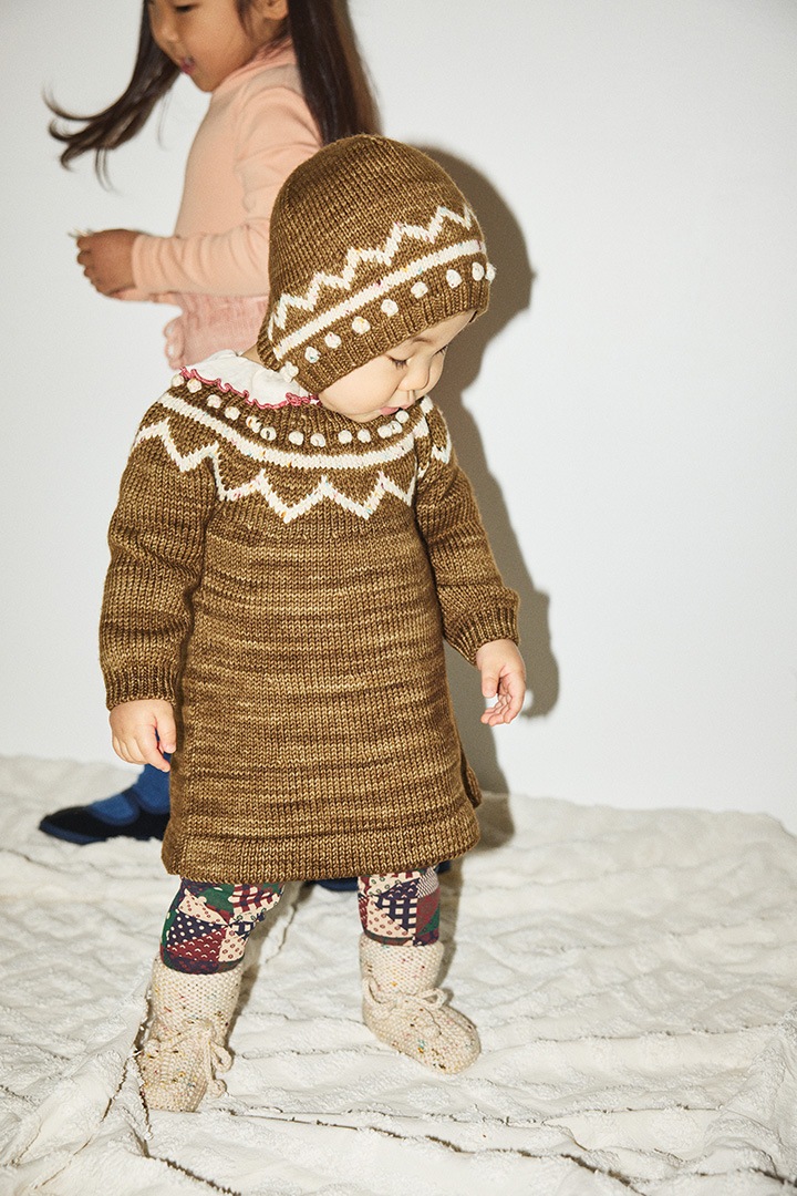 襟付きで、縁取りとリボン、スナップボタンがボルドーでアクセントになっています。
